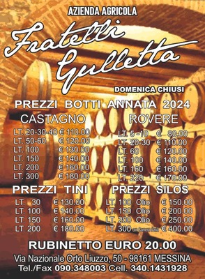 The firm has custom from Sicily and its products are:barrels, grapes, must and loose wine that sell to restaurants, farm holidays and private.
